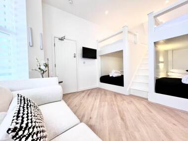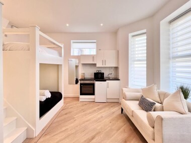We only allow dogs up to 36cm. We can only accommodate 1 dog per apartment. If you have 2 dogs, please contact us before your booking. There is a GBP25 charge for accommodating the dog, but the dog must not be allowed on our soft furnishings and if they do shows signs of use by a dog, there will be an additional cleaning charge. Dogs cannot be left alone at any time and must be kept on a lead unless in the apartment, whilst in communal areas dogs must be on a lead. If your dog causes a disturbance to another guest, you may be asked to leave early without any refund or compensation.