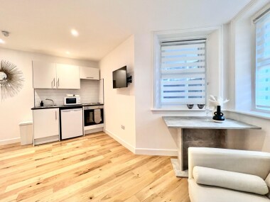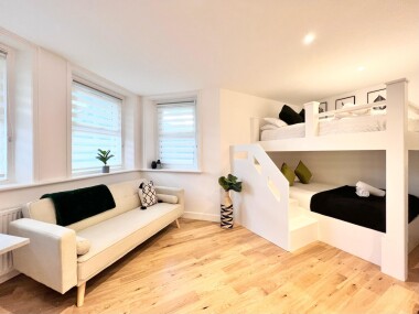 We only allow dogs up to 36cm. We can only accommodate 1 dog per apartment. If you have 2 dogs, please contact us before your booking. There is a GBP25 charge for accommodating the dog, but the dog must not be allowed on our soft furnishings and if they do shows signs of use by a dog, there will be an additional cleaning charge. Dogs cannot be left alone at any time and must be kept on a lead unless in the apartment, whilst in communal areas dogs must be on a lead. If your dog causes a disturbance to another guest, you may be asked to leave early without any refund or compensation.